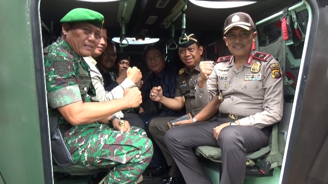 Pangdam II Sriwijaya Bersama Wakapolda Sumsel Serta Pejabat Muspida Foto Bersama Di Salah Satu Kendaraan Militer