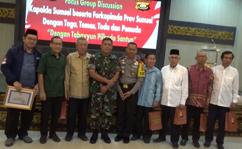 Palembang. Sumajaku.Com,- Kapolda Sumsel Irjen Pol Zulkarnain bersama Pangdam II Sriwijaya Mayjen TNI AM Putranto. Menghadiri acara Facus Group Discussion (FGD) Bersama Tokoh Agama, Tokoh Masyarakat dan Tokoh Adat dalam rangka menyukseskan Pilkada Damai 2018 di Provinsi Sumsel, dengan tema ‘Tabbayun Pilkada Santun’. Bertempat di Ruang Catur Prasetya Mapolda Sumsel. Rabu (28/03/2018) Pukul 09.30 Wib.