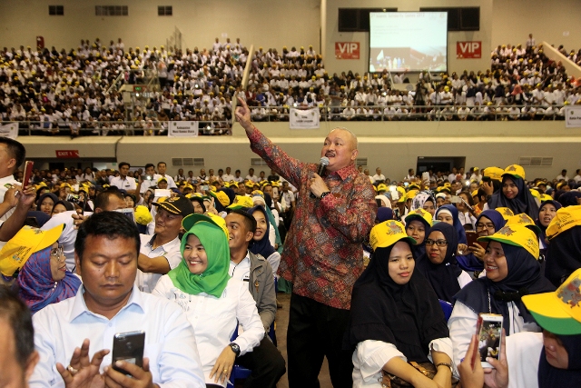 Palembang, sumajaku.com- Hari ini tentu sangat di nantikan bagi para puluhan ribu Tenaga Pendidikan SMA/SMK sederajat se Sumatera Selatan. Minggu (24/6) sengaja dikumpulkan di Palembang Sport and Convention Centre (PSCC), Selain Halal Bi Halal, Silaturahmi dan Sosialisasi Asian Games 2018 oleh Gubernur Alex Noerdin. Moment ini juga merupakan kebahagian tersendiri bagi para Tenaga Pendidikan karena Gubernur Alex Noerdin akan menyerahkan SK kepada Guru Honor. Tidak hanya itu, lebih menggembiranya lagi tunjungan para Guru Honor dari Rp. 1 juta dinaikan menjadi Rp. 1,5 juta.