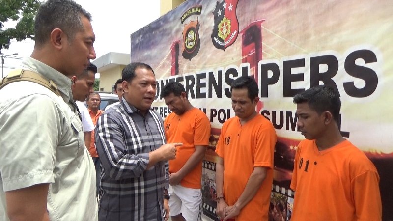 Tiga tersangka adalah. Tersangka Salman Parisi Bin TGK Puteh (41) warga Bukit Dago Blok A 05 RT 002 RW 014 Kelurahan Rawa Kalong Kecamatan Sindur Kabupaten Bogor. Tersangka Teuku Darmastiawan (38) warga Jala. jam Thaher Kelurahan Ujung Kecamatan Singkil dan Tersangka Samsuna Bin TGK Maksak (35) warga Desa Blang Bintang Kelurahan Blang Bintang Kecamatan Kuala.