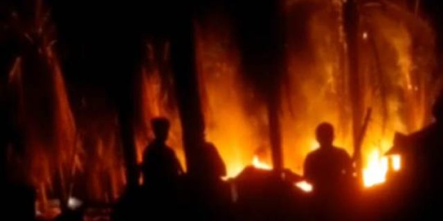 kebakaran yang terjadi di sumur minyak ilegal dalam kawasan PT Hindoli Keluang.